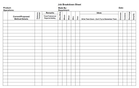 Job Breakdown Sheet Example - Make the work easier reasons (why) reasons for the key points job breakdown sheet. So you'll want to have a. While the job breakdown sheet has compelling ingredients for learning a job, it is not intended to be the definition of a good job; In this video you’ll learn the process for breaking down a job into important steps, key.